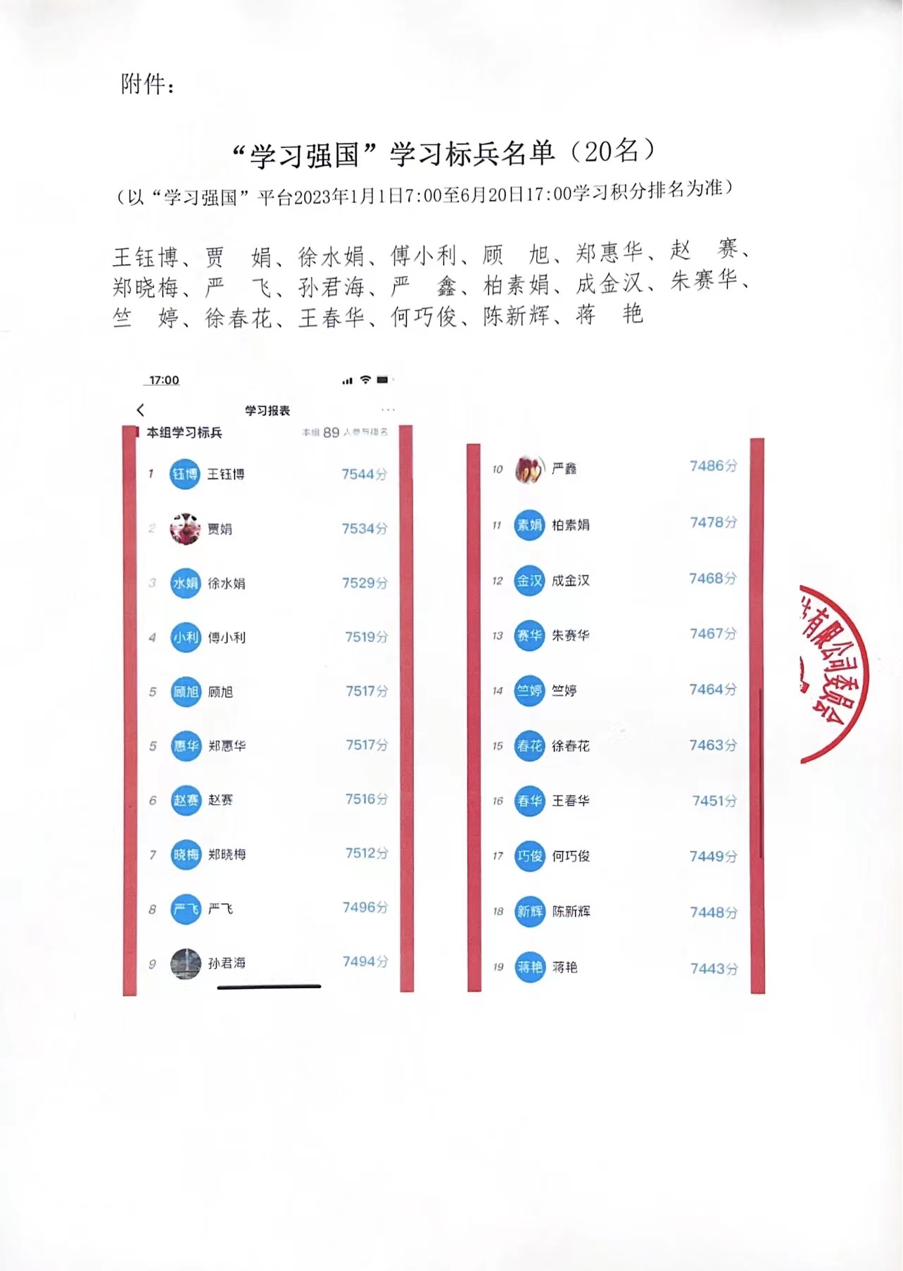 安惠黨委關于表彰“學習強國”學習標兵的決定