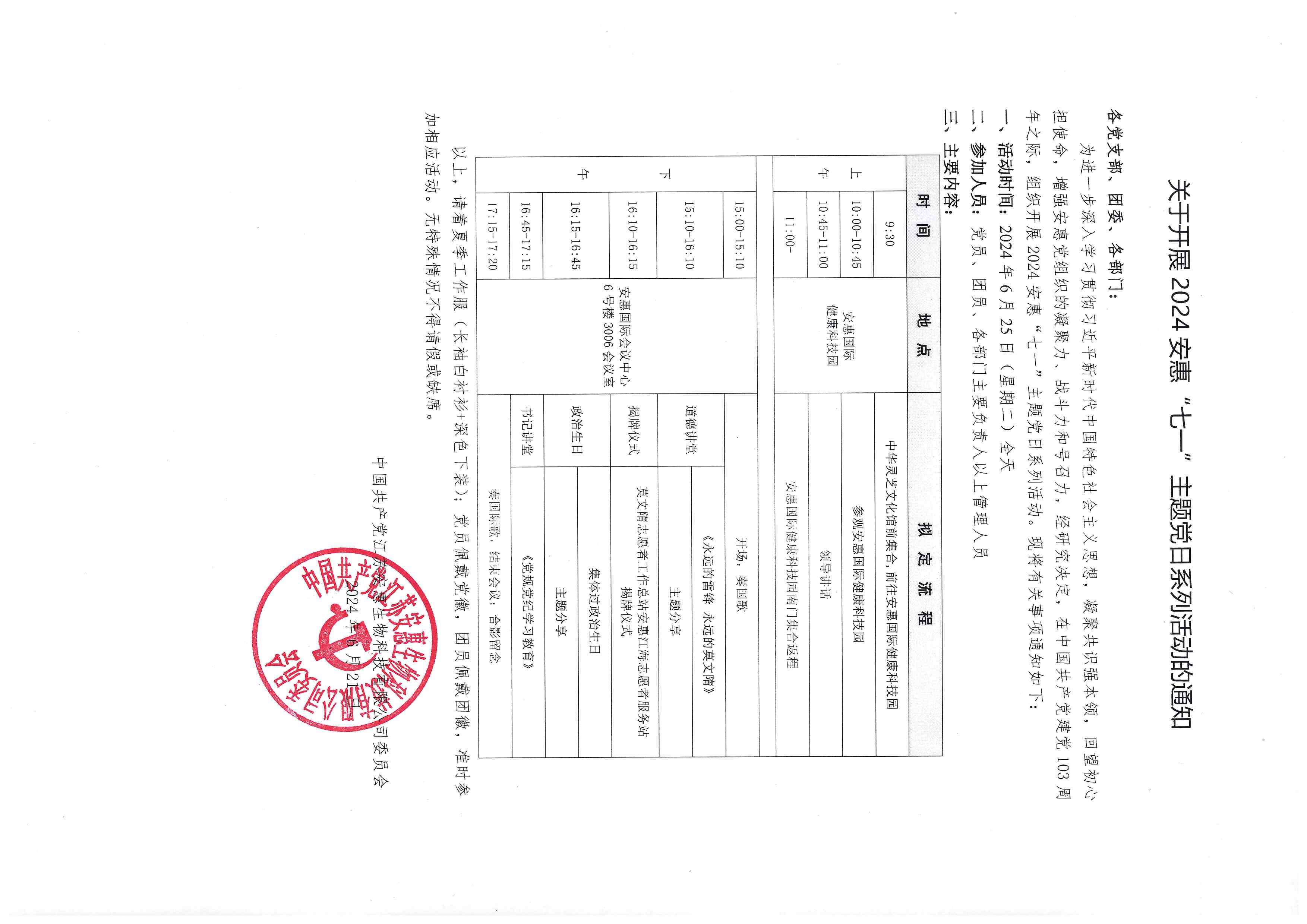 關(guān)于開展2024安惠“七一”主題黨日系列活動的通知
