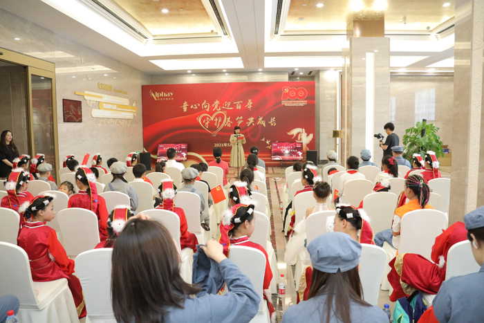 書記講黨史,童心永向黨。安惠公司黨委書記、董事長陳惠作為一名黨史志愿者講解員,帶領孩子們參觀安惠黨員政治生活館,簡述中國共產黨的發展歷程。安惠公司聽黨話,跟黨走,為建設健康中國不斷貢獻自己的力量。聽到“小蘑菇 大產業”,孩子們不停發出“嘖嘖”的贊嘆聲,原來小小的蘑菇也可以發揮如此大的能量。陳惠董事長表示,也許孩子們在當下并不能完全理解,但相信在他們年幼時注入紅色思想,對未來成長定有幫助。
