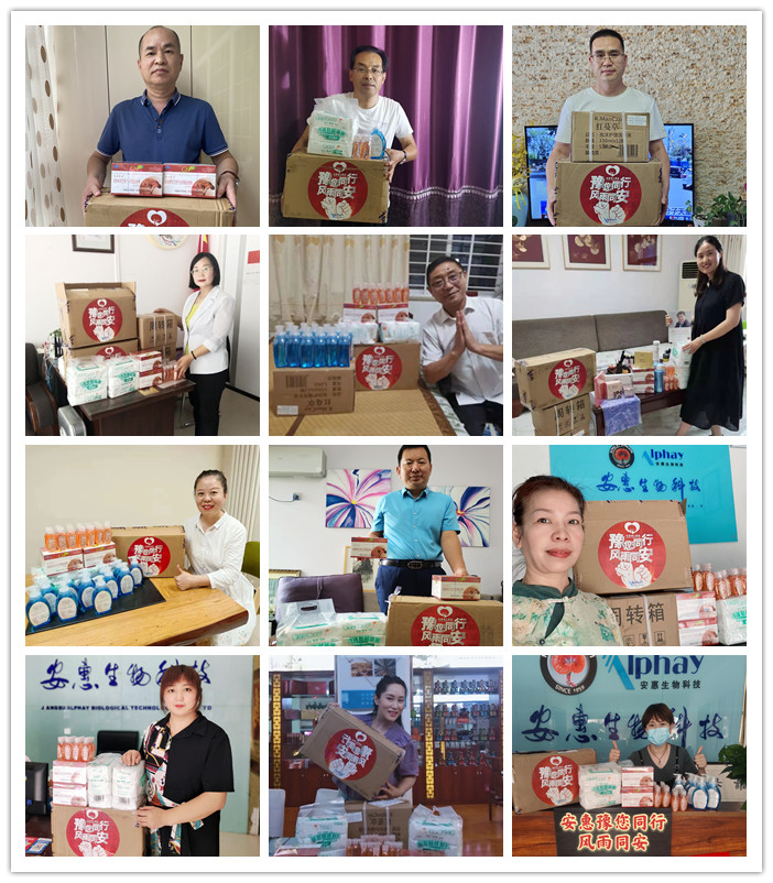 安惠公司以強烈的責任感和擔當精神,開展捐贈慰問活動。2021年8月,河南地區綠芝及以上領導人、河南地區專賣店店長和服務中心負責人、河南地區2021財年樂享達成人員、河南地區部分市場骨干人員等80人陸續收到了安惠愛心基金捐贈的慰問物資:通惠牌靈芝孢子蟲草菌絲體粉、紅蔓草泡沫護理洗手液、惠寶寶嬰兒手口濕巾、竹紅菌素抑菌免洗手凝露等。